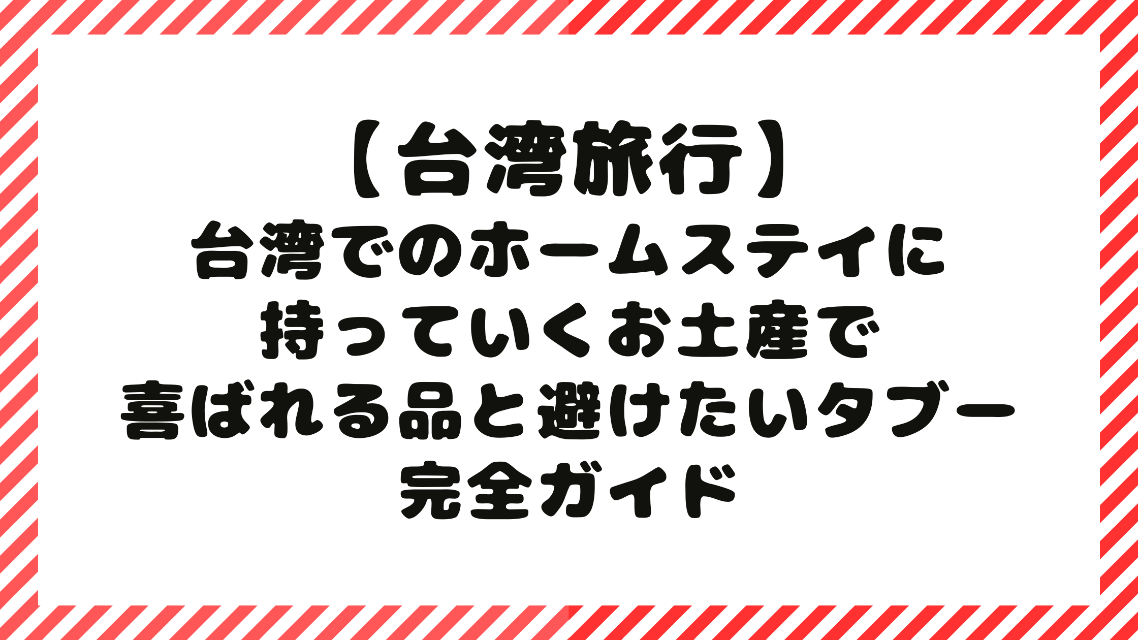 台湾のホームステイのお土産選びで迷っていませんか。喜ばれるお土産やタブーなお土産、実用的なキッチングッズ、渡す時のマナーまで、台湾人が喜ぶ日本のお土産の考え方を整理します。お菓子の選び方、ホストファミリーへのお土産や子供向けの配慮、100均で揃える工夫、台湾人へのお土産でNGなものの理由、ホームステイにお土産は必要?という疑問、さらにホームステイ先のお土産の相場は?の目安まで、検索の悩みにまとめて答えます。